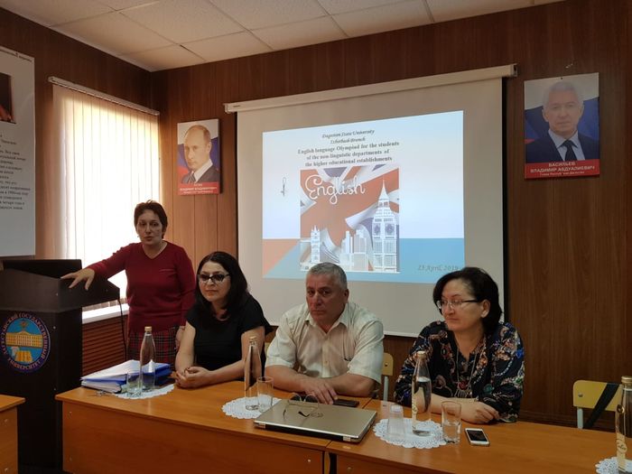 Перед участниками с приветственным словом выступили председатель оргкомитета олимпиады Патимат Даитова, доцент кафедры иностранных языков экономического отделения ДГУ Саида Айгубова, заведующая кафедрой ЭПиОД Аминат Сулейманова и заведующий отделением ВО Радик Нухдуев.