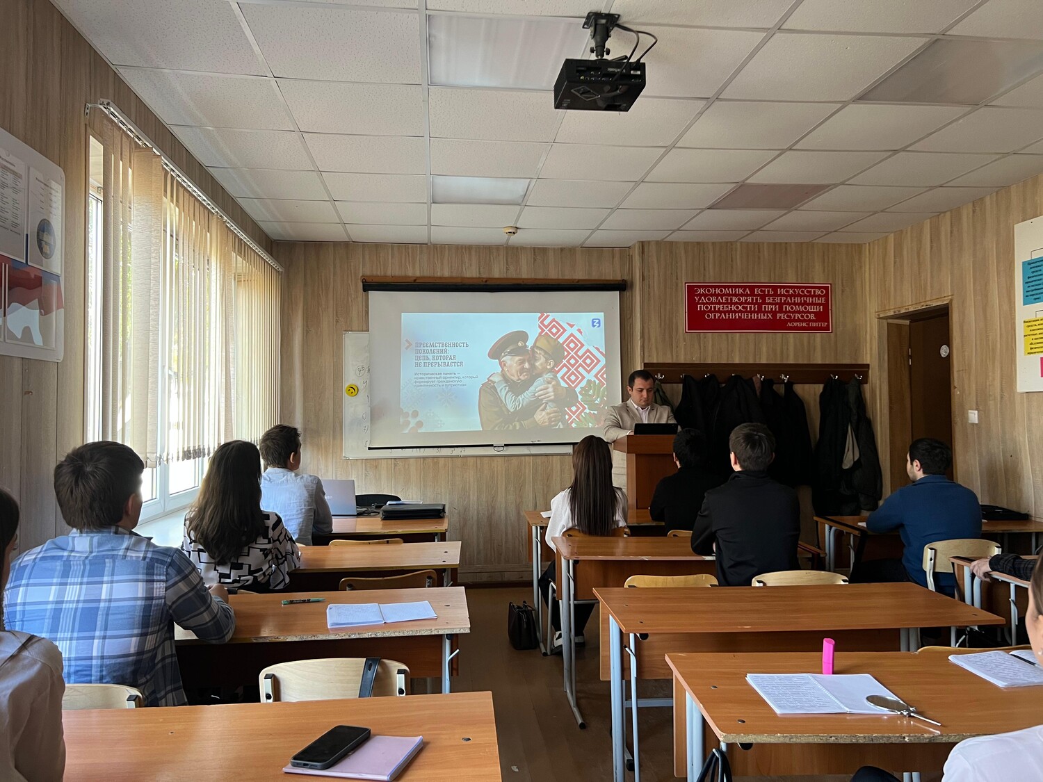 7 ноября в стенах филиала прошла лекция, которая была посвящена Дню народного единства России, для студентов 1 курса 1 группы отделения среднего профессионального образования (СПО) по специальности «Юриспруденция» была организована познавательная и вдохновляющая лекция на тему «Сила единства. История и будущее России». Мероприятие провёл Шарип Чапаев, член партии «Единая Россия», лектор Всероссийского общества «Знание», специалист по учебно-методической работе и преподаватель.