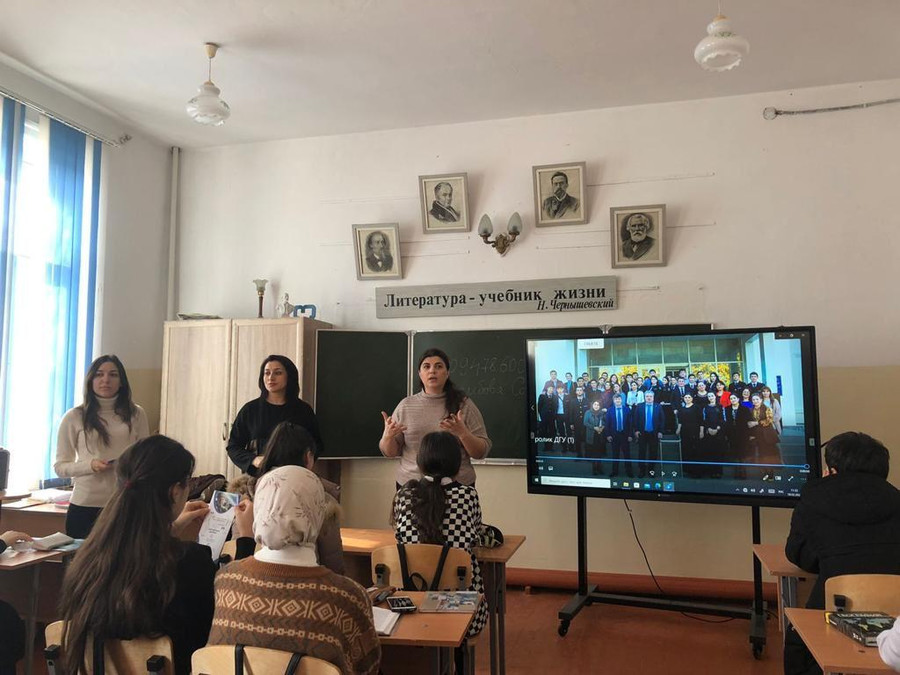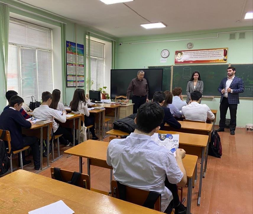 В Избербашском филиале ДГУ начался этап активной профориентационной работы, в рамках которой преподаватели, сотрудники и студенты филиала посещают городские школы.