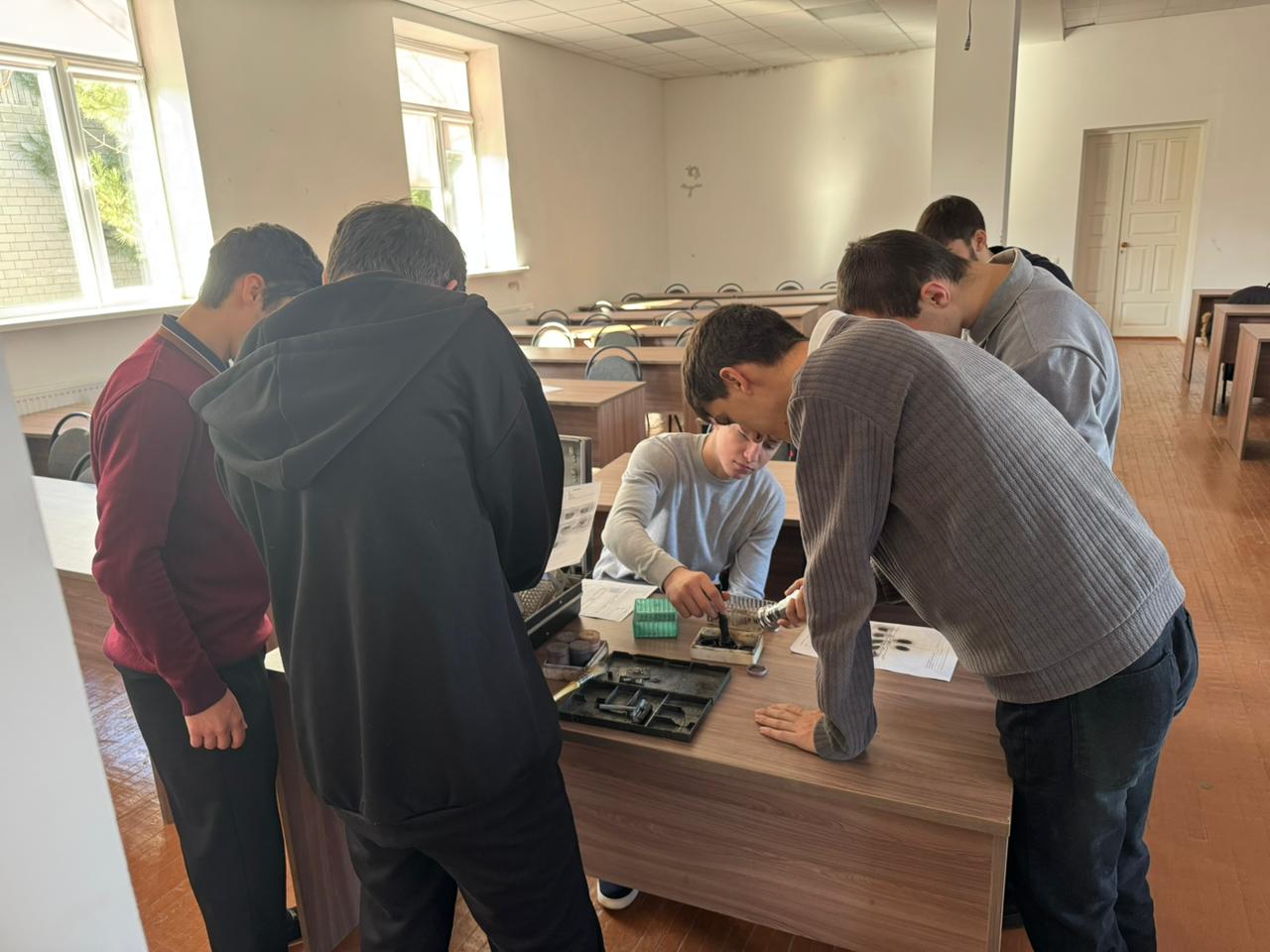 Студенты получили образцы отпечатков пальцев и выполняли такие задания, как определение типов папиллярных узоров, выявление особенностей каждого образца, сравнение полученных данных с контрольными образцами, вывод о принадлежности отпечатков одному лицу или разным лицам.