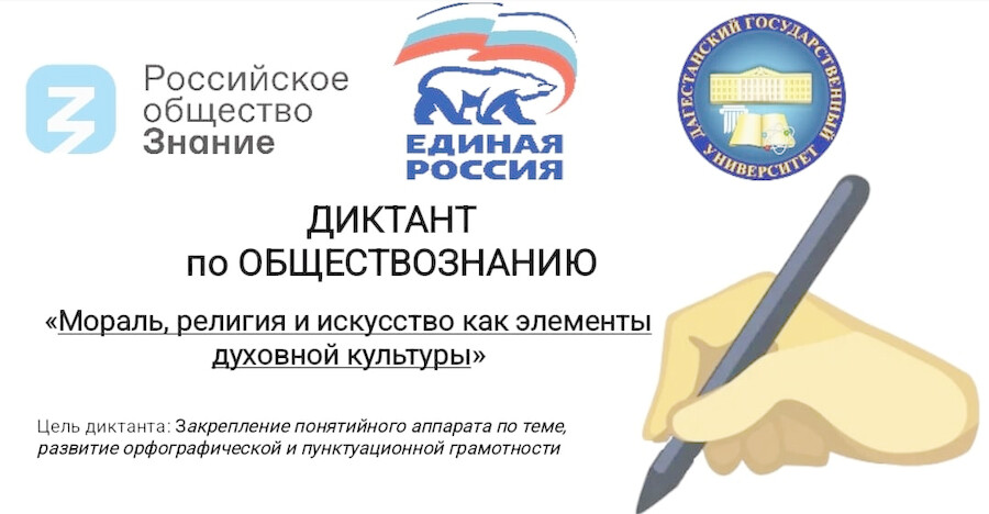 Преподаватель обществознания, лектор Всероссийского общества «Знание» Шарип Чапаев провёл открытое практическое занятие по обществознанию на тему «Мораль, религия и искусство как элементы духовной культуры». Семинар прошёл в формате диктанта, который писали студенты 1 курса отделения СПО специальности «Юриспруденция». На занятии присутствовали заведующая отделением Зарета Магомедова, методист отделения Эльмира Исаева и куратор Зубайдат Гаджиева. Диктант был проведён для закрепления понятийного аппарата по теме и развития орфографической и пунктуационной грамотности студентов.